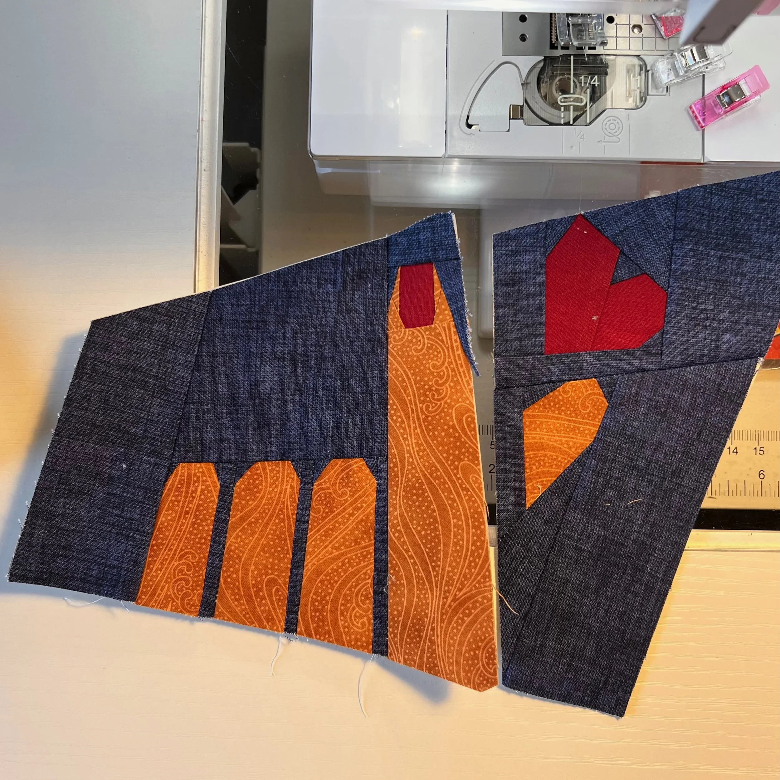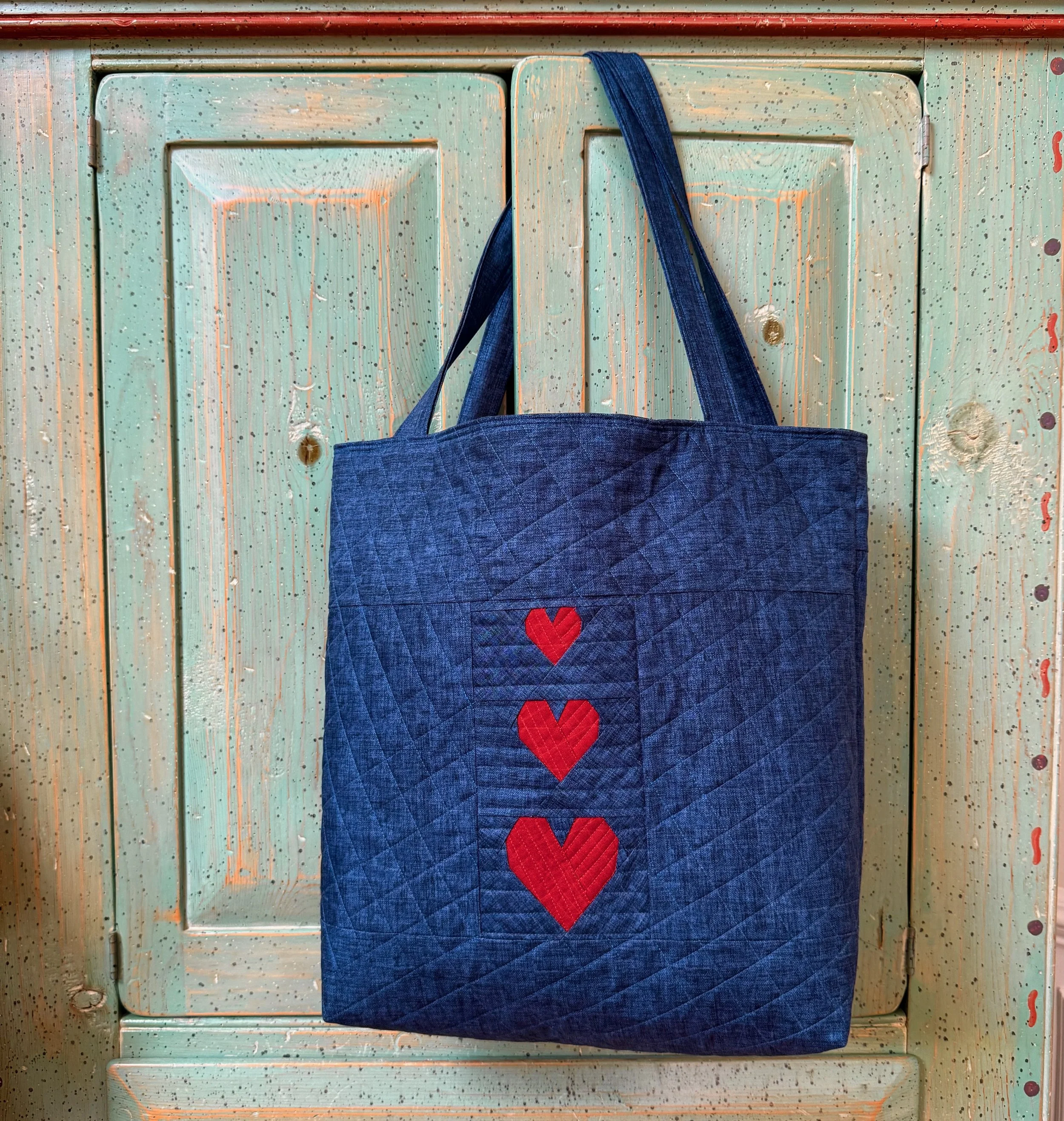 This is a Foundation Paper Piecing (FPP) pattern from Happy Sew Lucky. This is sold as a banner but I turned it into a tote bag.