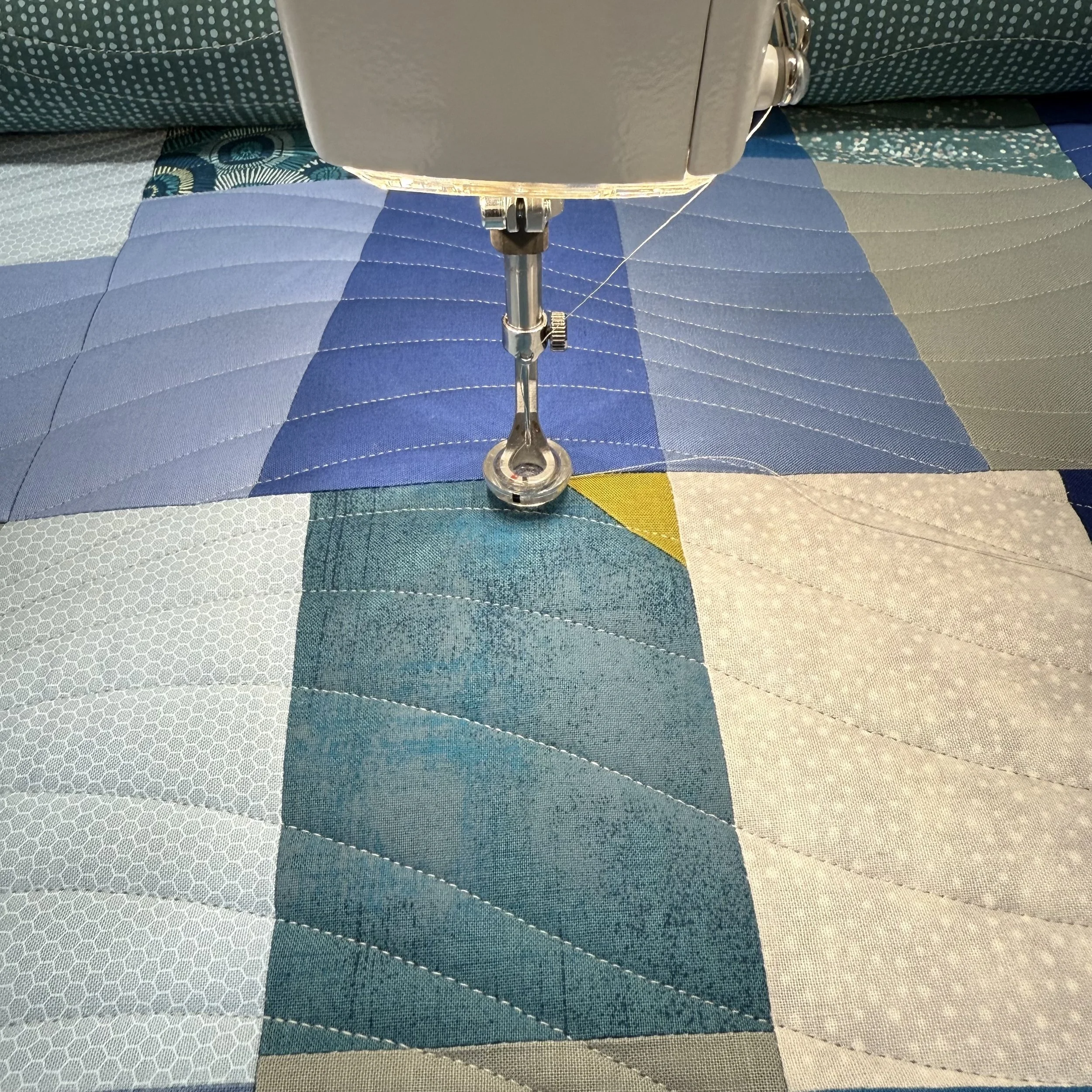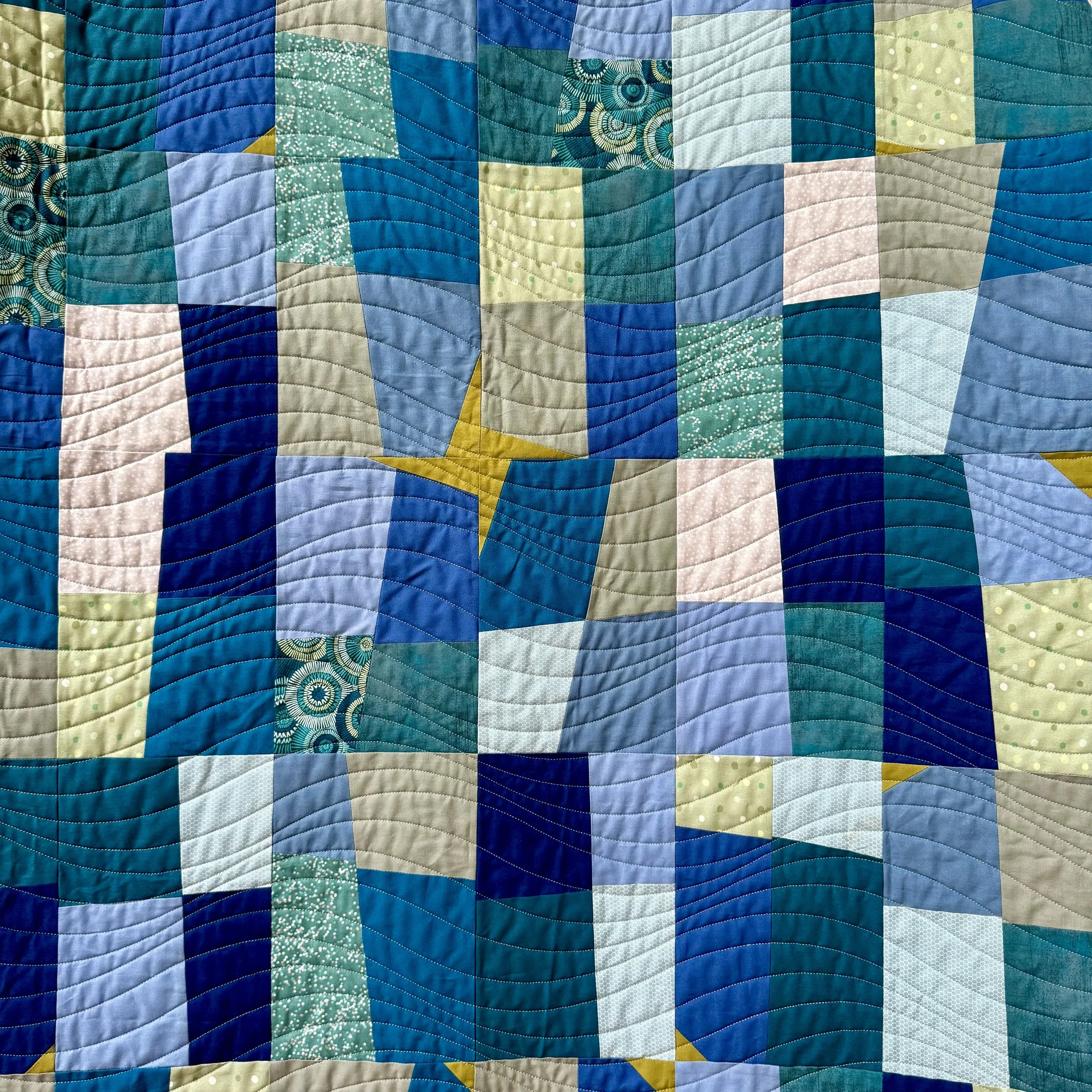 I quilted this on my longarm with a quilting pattern called Good Vibrations.