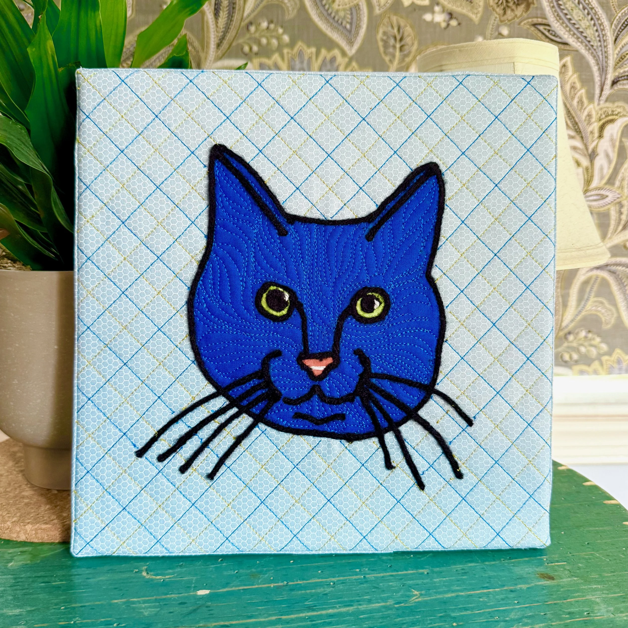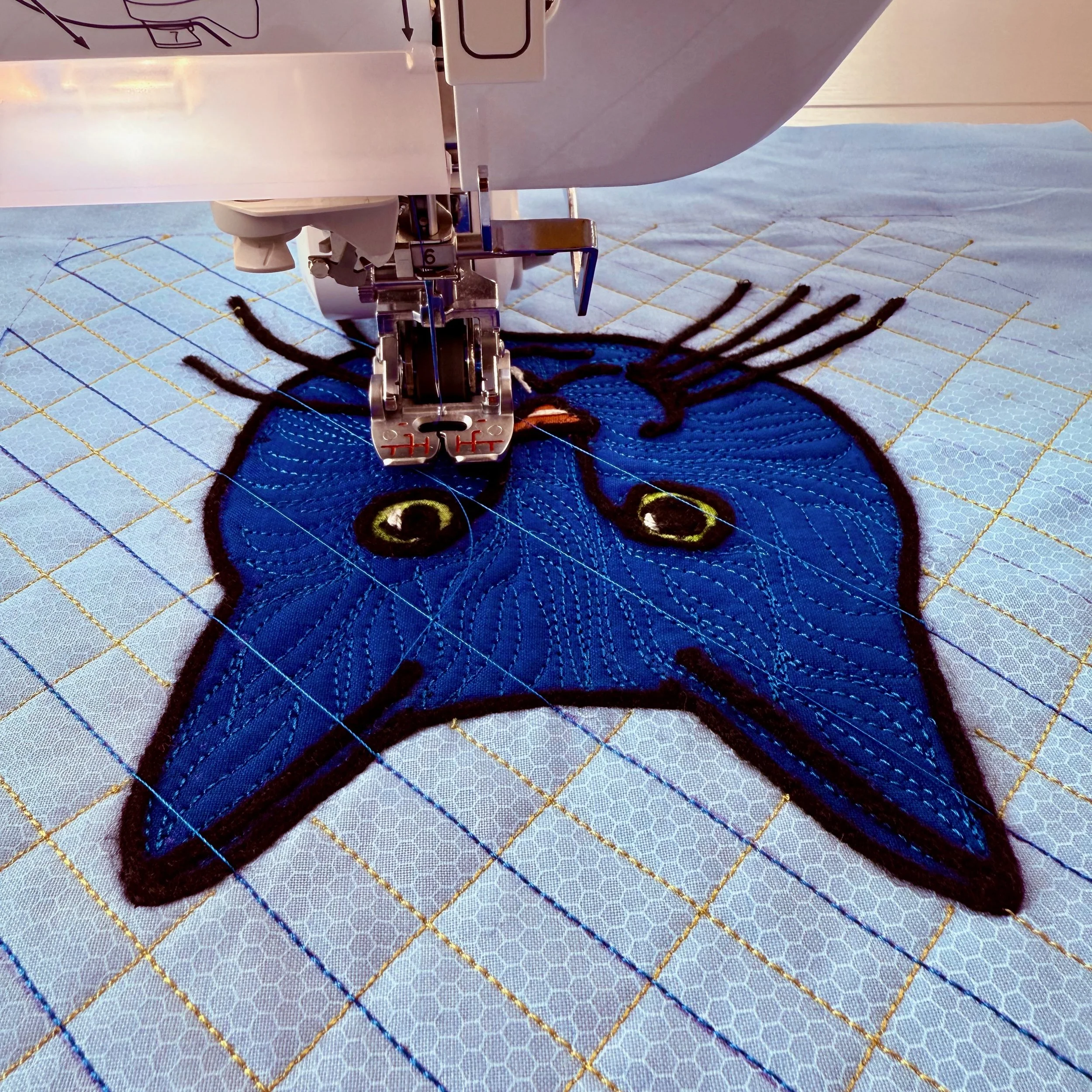 Once the couching was done, I quilted the background with a grid pattern.